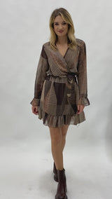 Modello con scollo incrociato e una cucitura in vita elastica sulla quale è annodata la fusciacca.