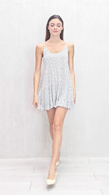 Realizzato in 100% viscosa naturale, ha una modellatura svasata con balza finale e spalline sottili.