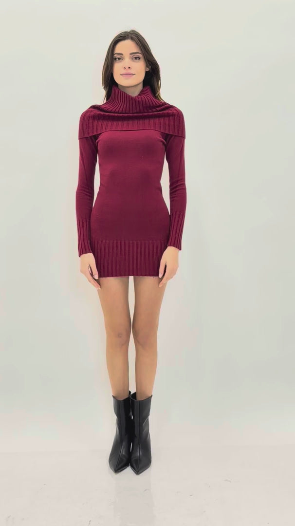 Abito in maglia con collo ampio a coste