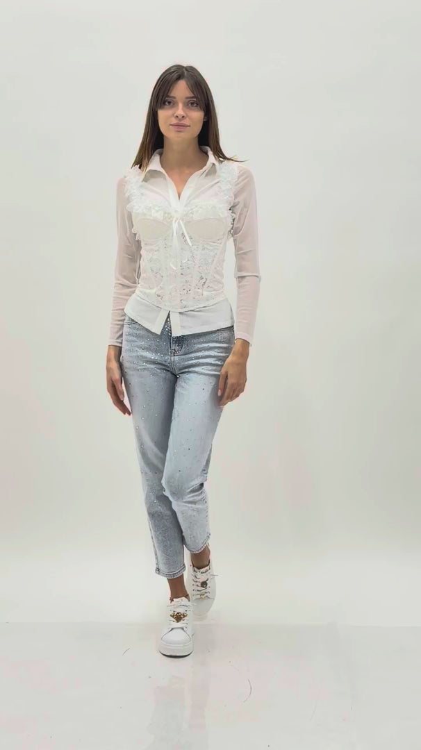 Bustier in pizzo con coppe preformate, stecche rigide e rouche sullo scollo