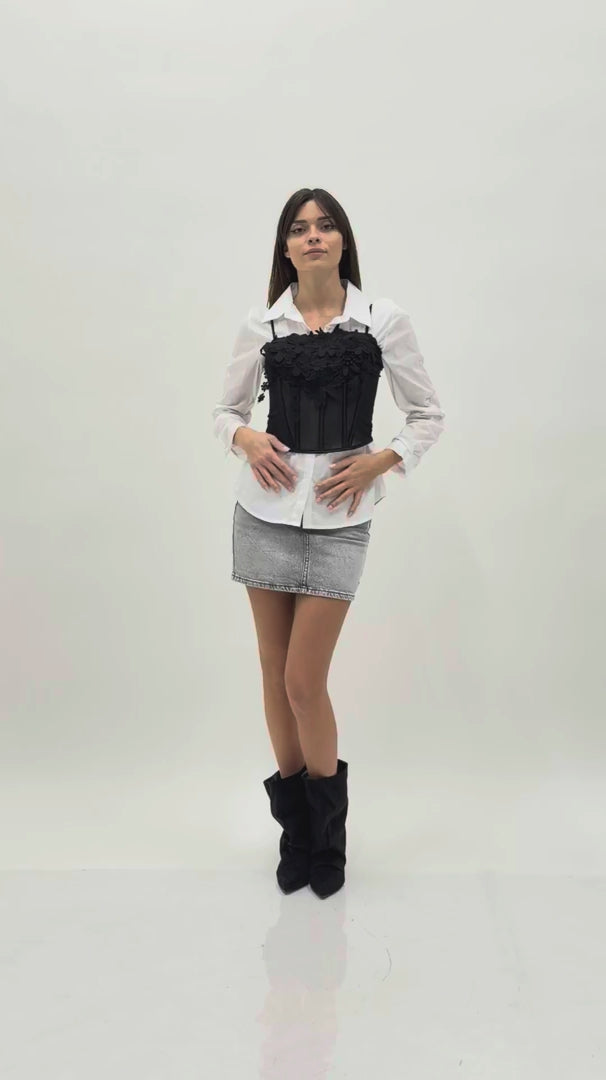 Bustier in pizzo elasticizzato con coppe preformate e passamaneria al fondo