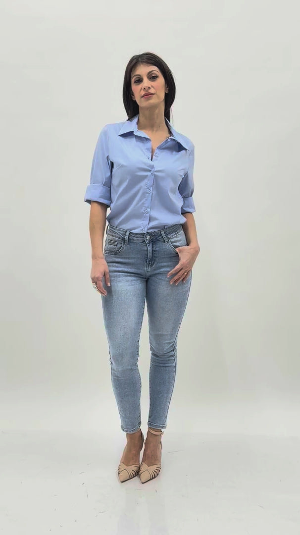 Camicia azzurra in cotone elasticizzato leggermente avvitata