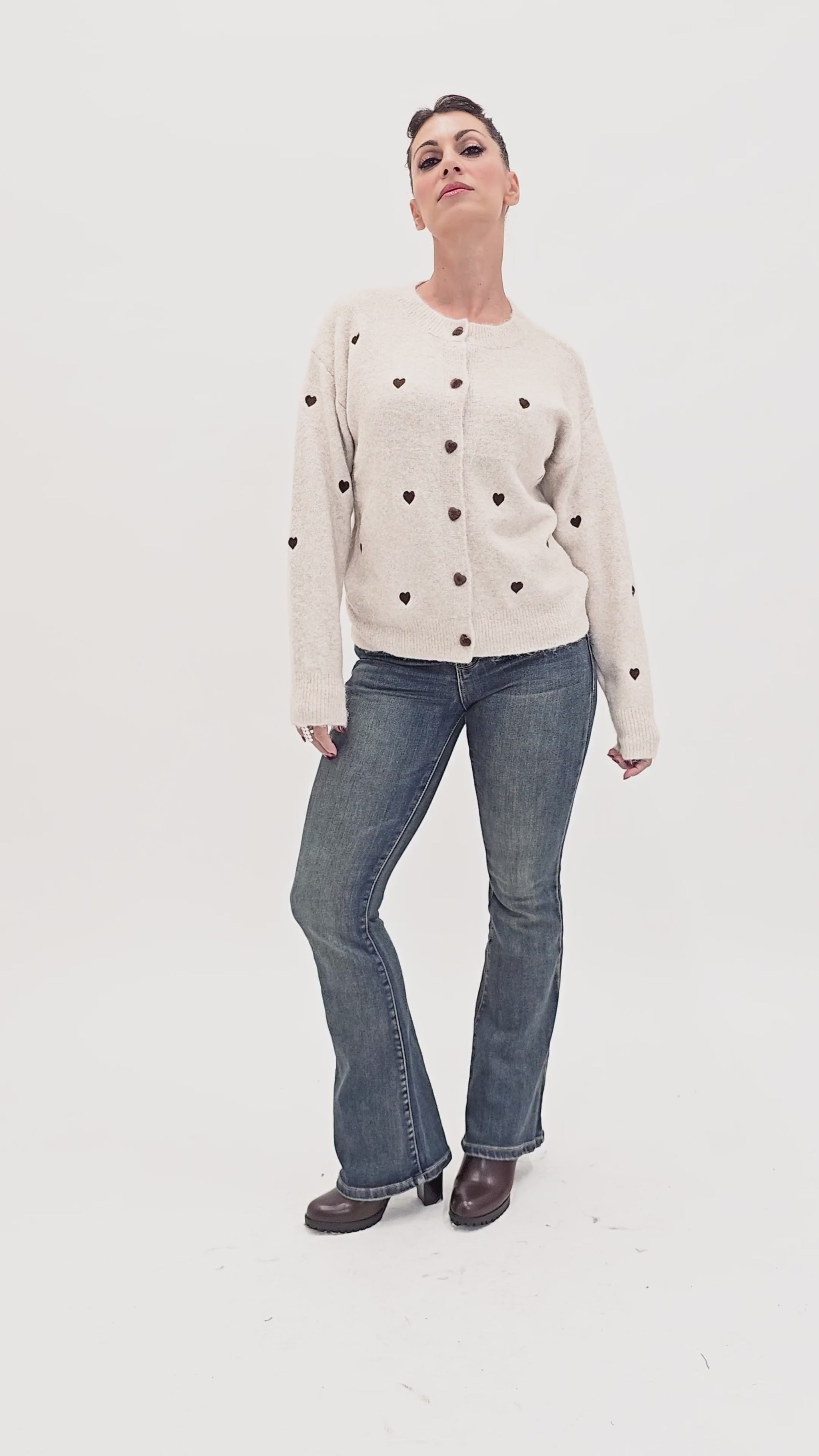 Cardigan SweetHeart in misto lana con ricami a cuore