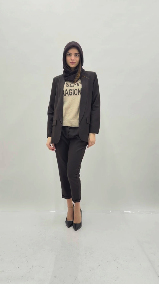 Giacca aperta in poliviscosa con bavero lungo e fodera gessata – Marrone
