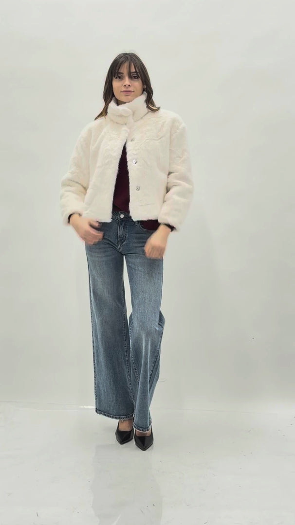 Giacchetto ecopelliccia corto con bottoni interni