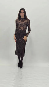 Gonna lunga in microrete con paillettes e spacco laterale