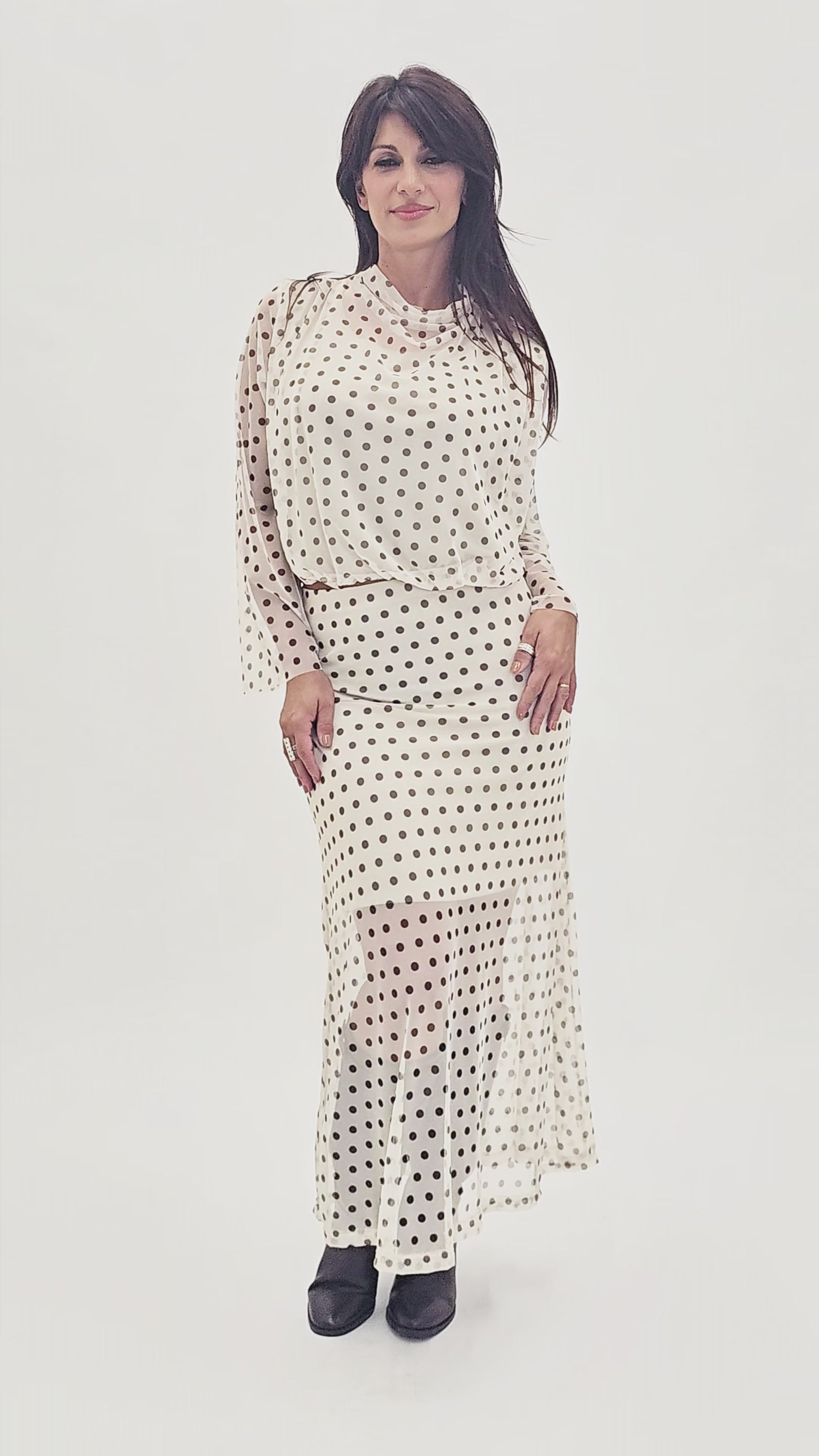 Gonna lunga trasparente fantasia DotBloom con fodera corta