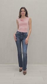 Il taglio a vita media offre il massimo comfort, adattandosi perfettamente alle forme senza stringere. Perfetto da abbinare sia a sneakers per un look casual, sia a tacchi per un tocco più raffinato e femminile.