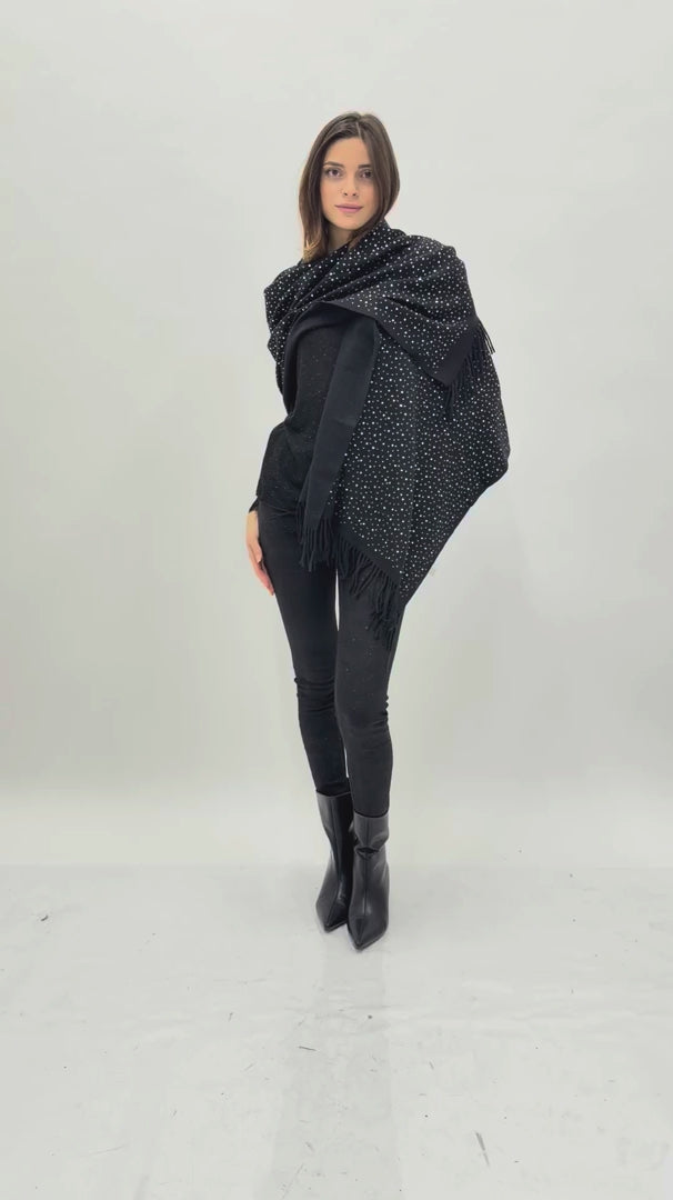 Maglia over con scollo ampio in viscosa e cashmere con filo laminato