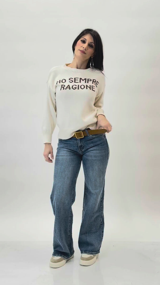 Maglione girocollo con scritta “Ho sempre ragione” in cotone misto