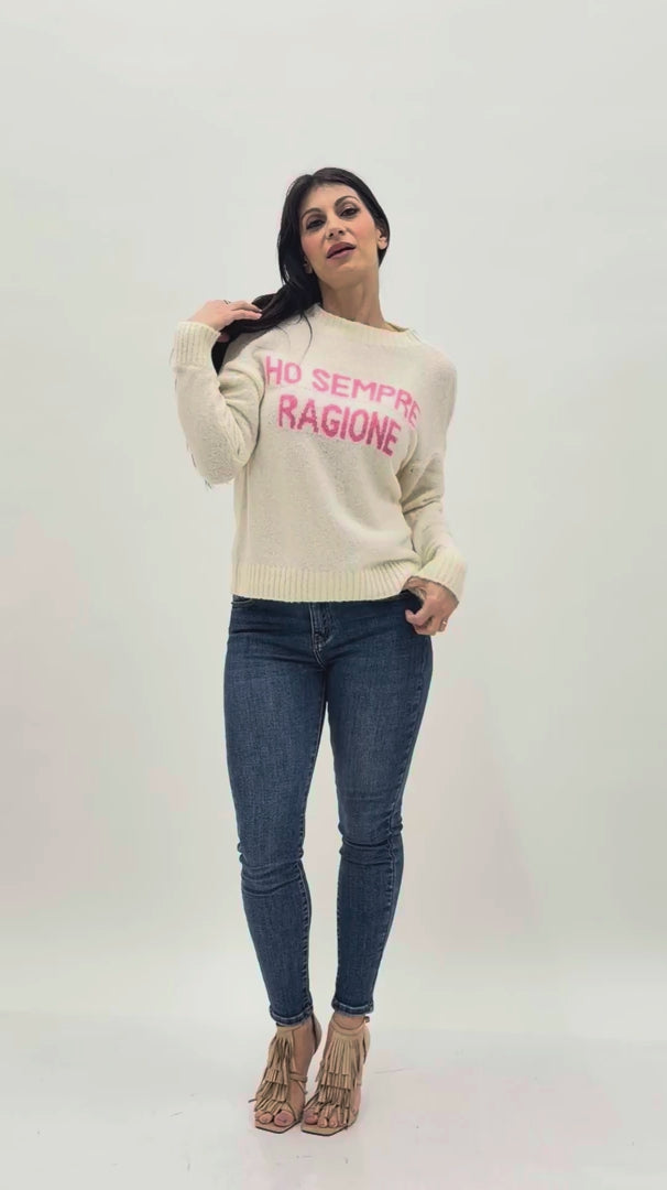 Maglione girocollo con scritta “Ho sempre ragione” in misto lana Made in Italy