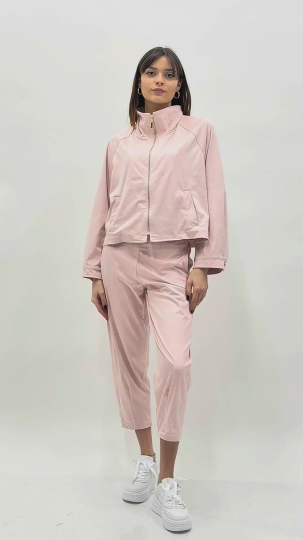 Pantalone cropped in tessuto effetto dainetto elasticizzato