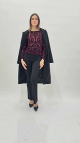 Pantalone donna punto Milano nero elasticizzato a zampetta vita alta