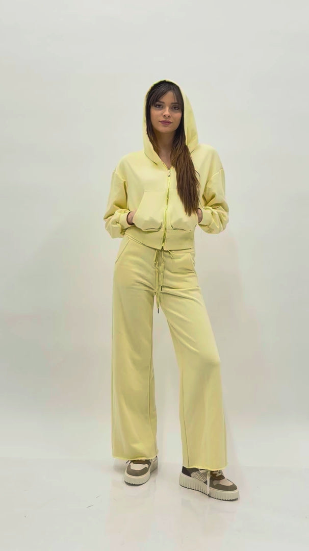 Pantalone palazzo in felpa elasticizzata con coulisse