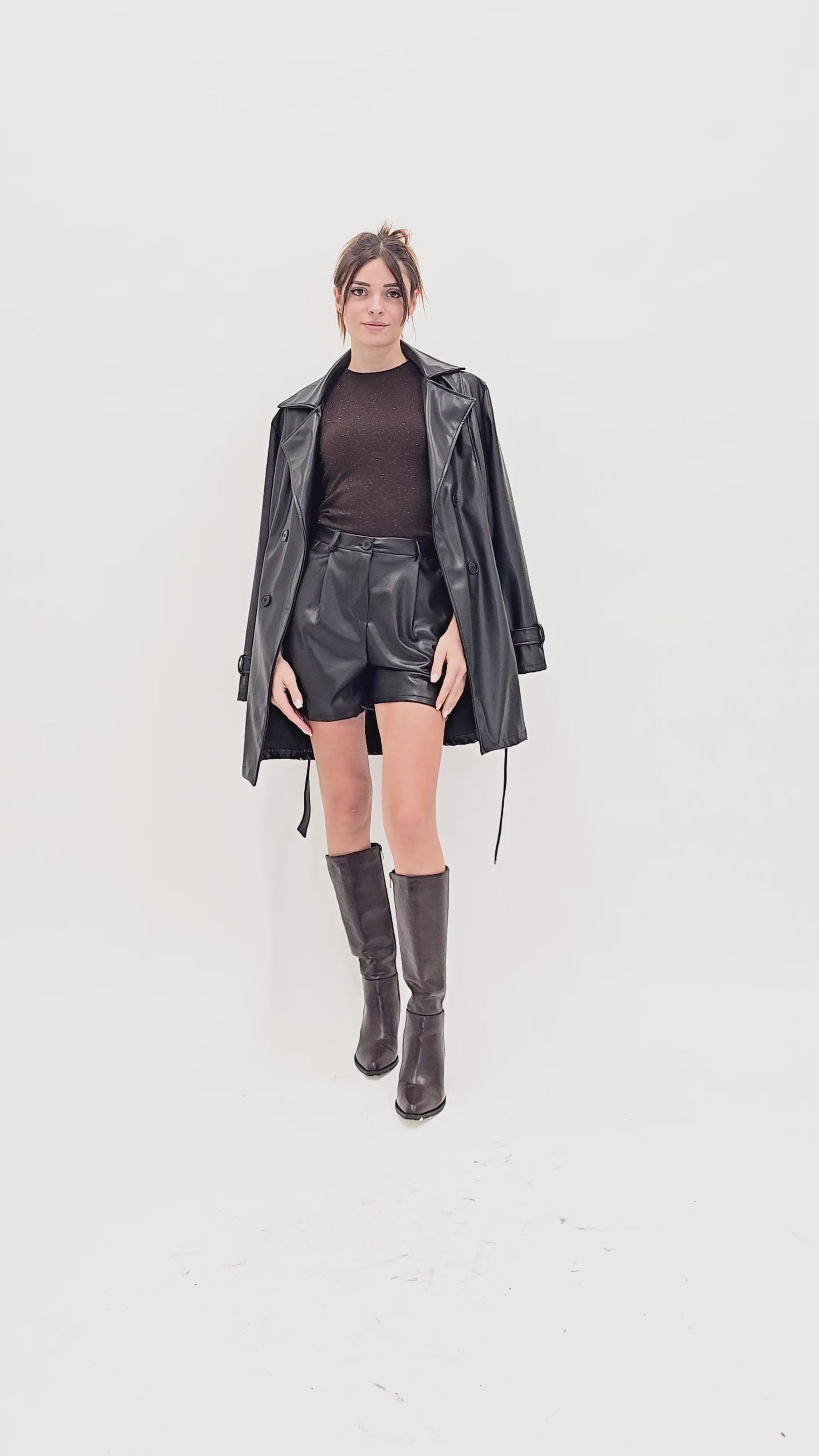 Shorts in ecopelle morbida e consistente, dal taglio femminile e deciso.